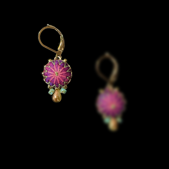 Ohrringe Boho: Edelstahl, Seide (alte Sariborden), Glas, Länge ca. 5cm